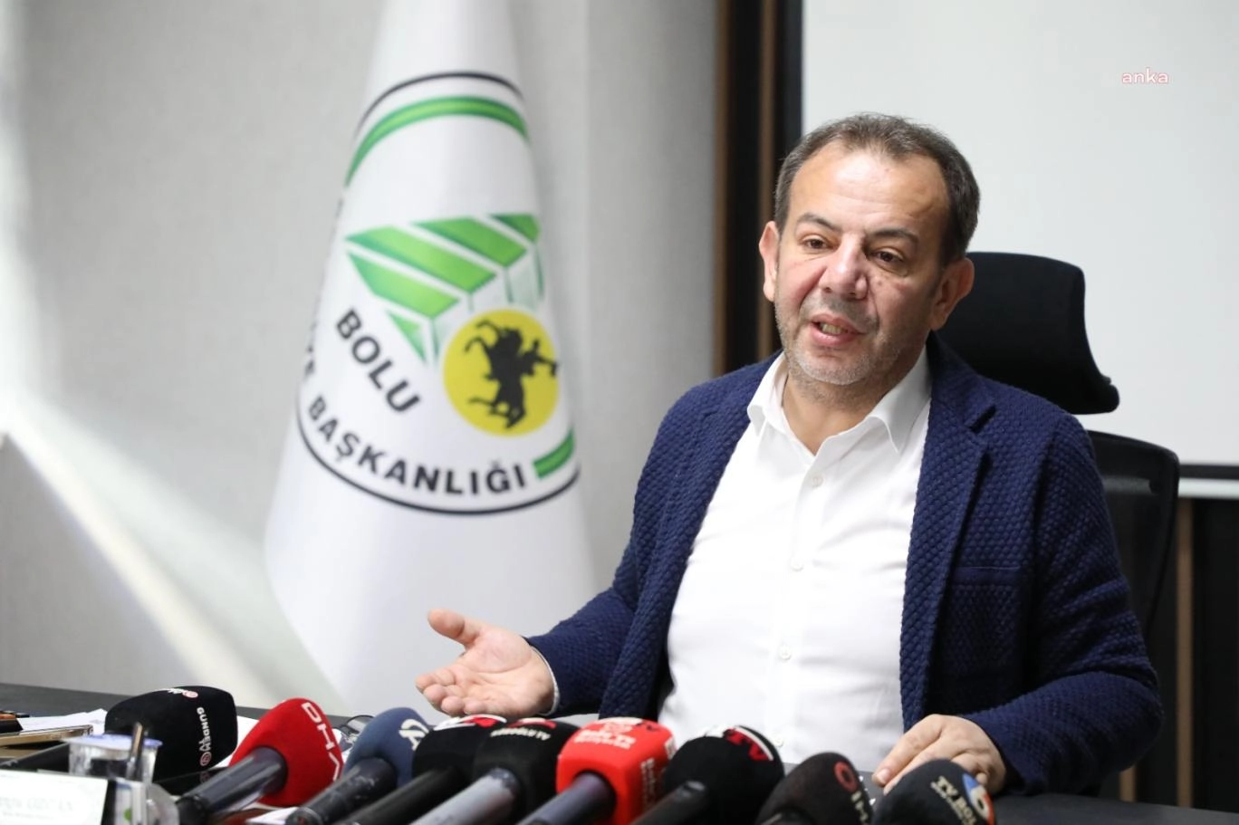 Tanju Özcan ile görüşmek isteyen H.H., Özcan’ın makam girişinde koruma polisiyle tartıştı. Taşkınlık çıkartan ve üzerinde bıçak bulunduğu tespit edilen H.H., polis ekiplerince gözaltına alındı. H.H.’nin Bolu’da pazarcılık yaptığı ve zabıtalarla yaşadığı bir problem nedeniyle Özcan ile görüşmek istediği öğrenildi. Yaşanan olayın ardından basın toplantısı düzenleyerek bilgi veren Tanju Özcan, şunları söyledi: