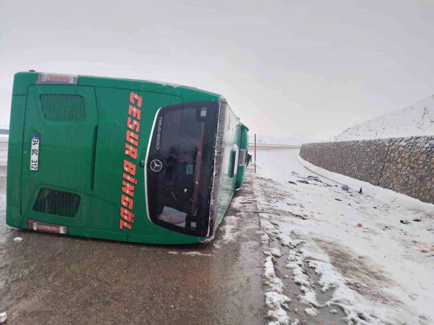 Bingöl’ün Karlıova ilçesinde kar yağışı ve buzlanma nedeniyle devrilen yolcu otobüsündeki 2 kişi öldü, 16 kişi yaralandı.