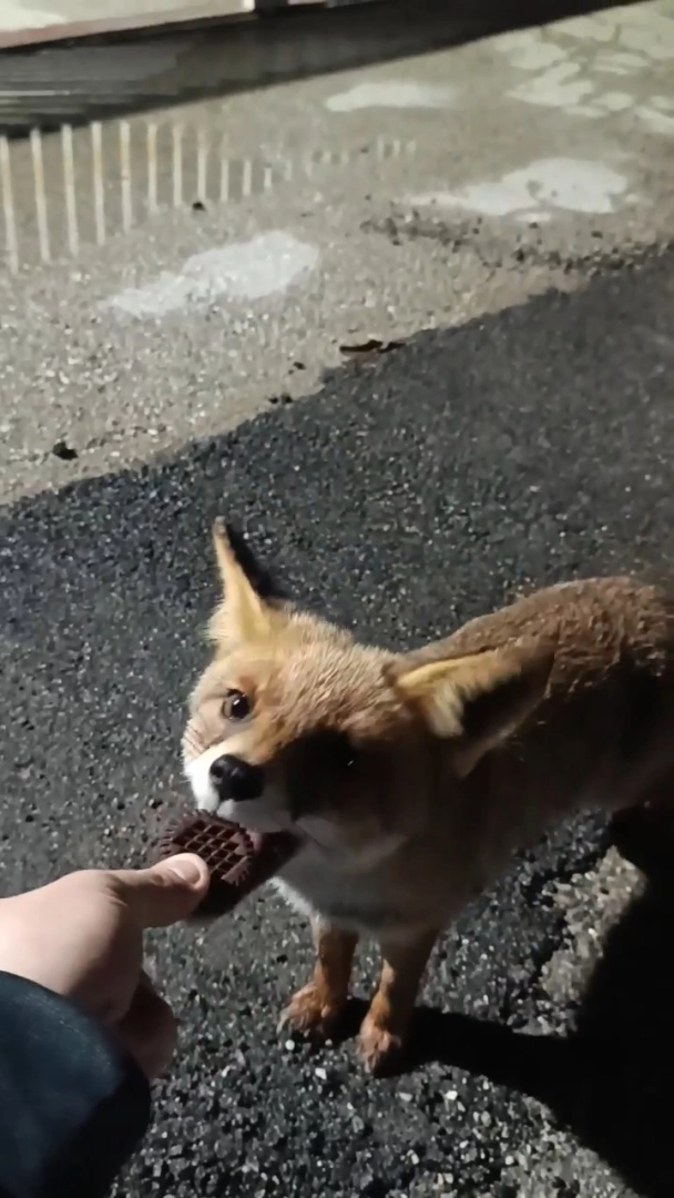 Merkez Nilüfer ilçesinde aç kalan ve yemek bulamayan tilki bir fabrikanın yakınlarına gitti. Orada görevli bir vatandaş ise tilkiyi eline aldığı bisküvi ile beslerken tilki geldiği ormanlık alana doğru giderek gözden kayboldu.