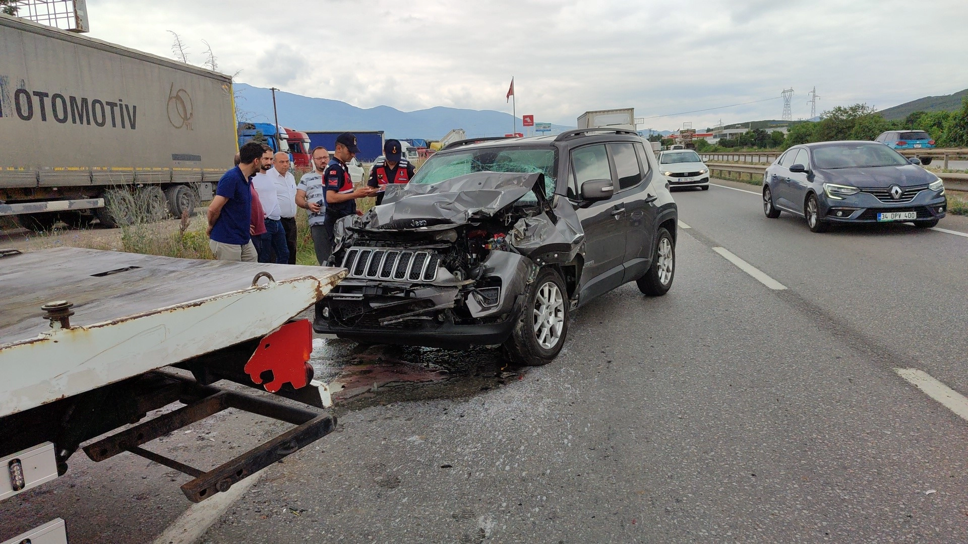 Orhangazi-Bursa karayolu Çeltikçi kavşağı yakınlarında saat 12:00 de meydana gelen kazada; Alınan bilgiye göre; Murat Kerim Çekiç (51) idaresindeki 16 CTL 688 plakalı lüks jip Bursa istikametinden Orhangazi istikametine seyir halindeyken önünde seyir halinde olan Hasan K.(41) yönetimindeki 06 TG 450 plakalı TIR’a arkadan çarptı.