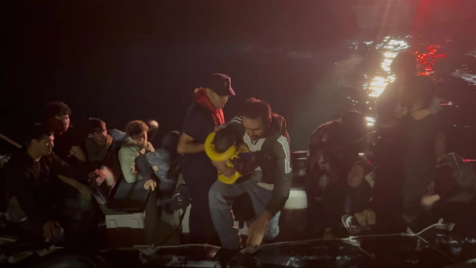 Çanakkale Boğazı’nda Bozcaada ilçesi açıklarında Sahil Güvenlik Komutanlığı ekiplerince lastik bot içinde 15’i çocuk olmak üzere 25 kaçak göçmen ile 1 göçmen kaçakçısı şüphelisi yakalandı.