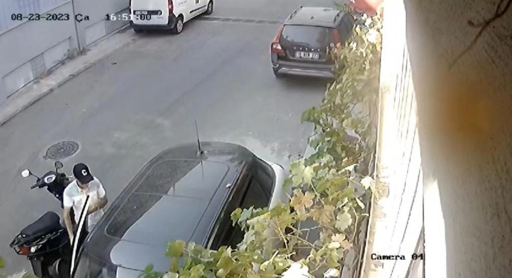 Bursa’da bir tekstil çalışanının babasından bozdurmak için emanet aldığı 4 bin doların saniyeler içinde çalınması kameralara yansıdı. Merkez Yıldırım ilçesi Vişne Caddesi'nde bir tekstil firmasında çalışan Recai Demir, babasından bozdurmak için 4 bin dolar aldı. Bu sırada iş yerindeki mesaisini tamamlamamak için dükkana uğrayan Demir, aracının da camlarını hava alsın diye bir karış açık bıraktı. İş arkadaşlarıyla mesaisini tamamlayan adam, iş yerinin hemen önüne bıraktığı otomobiline bindi. Cüzdanındaki paraya yönelen Demir, 4 bin dolar ve bin lira parasının cüzdanda olmadığını gördü. Bir süre parasını arayan Demir, bulamayınca güvenlik kameralarını inceledi. Plakasız motosikletle gelen bir kişinin etrafı kolaçan ettikten sonra soğukkanlılıkla araca girip parayı çaldığını görünce şok yaşayan Demir, polisten yardım istedi.