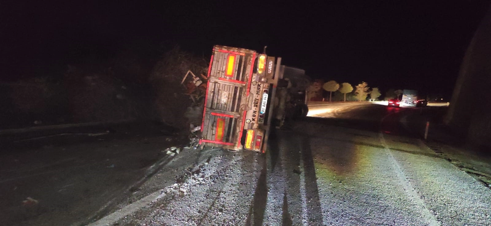 Malatya istikametinden Gölbaşı istikametine gelen Serkan E. idaresindeki hurda demir yüklü TIR, Aktoprak köyü yol kavşağında sürücüsünün direksiyon hakimiyetini kaybetmesi sonucu kontrolden çıkarak yan yattı.