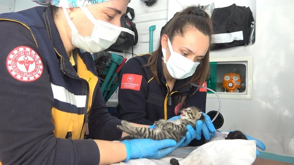 Dumandan zehirlenen iki yavru kedinin hareketsiz olduğunu gören itfaiye ve 112 ekipleri seferber oldu. Adeta zamanla yarışan itfaiye ekibi önce kedilere suni tenefüs ve kalp masajı uyguladı. İtfaiye ekibi kedilere bir miktar da oksijen verdi. Kısa sürede canlanmaya başlayan kediler için 112 ekibindeki sağlıkçılar da devreye girdi. Ambulansta oksijen verilmeye devam edilen kediler canlandı. O anları gören mahalle sakinlerinden Emine Öztaş ise gözyaşlarına hakim olamadı. İtfaiye ve sağlık ekibinin 15 dakika boyunca zamanla yarışı ise an be an kameraya yansıdı Çevredeki güvenliği sağlayan polis ekiplerinin çıkan yangınla ilgili çalışması devam ediyor.