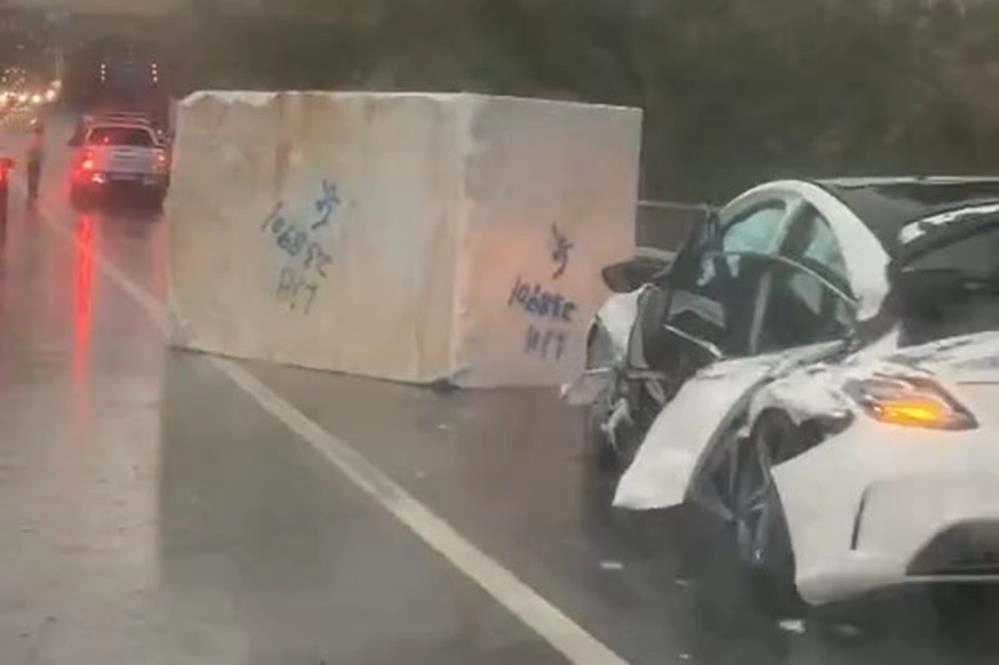 Türkiye’nin en yoğun mermer varlığına sahip bölgelerin başında gelen Aydın ve Muğla illerinde mermer taşıyan kamyonlar, sürücülerin korkulu rüyası haline gelmeye başladı. Aydın-Muğla Karayolu Yatağan yakınlarında kasasına yüklenen tonlarca ağırlığındaki mermer blok ile seyreden kamyonun şoförü, virajdan dönmek istediği sırada kontrolünü kaybedince yükü yola düşürdü. Bu sırada arkadan gelen otomobilin sürücüsü mermer blokun araçla birlikte kendilerini ezeceğini fark edince ani manevra yaparak faciayı önledi. Aracın sol tarafını ezip geçen mermer blok yol ortasında kalınca, hasar alan otomobil de kullanılamaz hale geldi. Trafik ekipleri tarafından ilginç kaza ile ilgili soruşturma başlatılırken, olayda can kaybı yaşanmaması teselli kaynağı oldu.