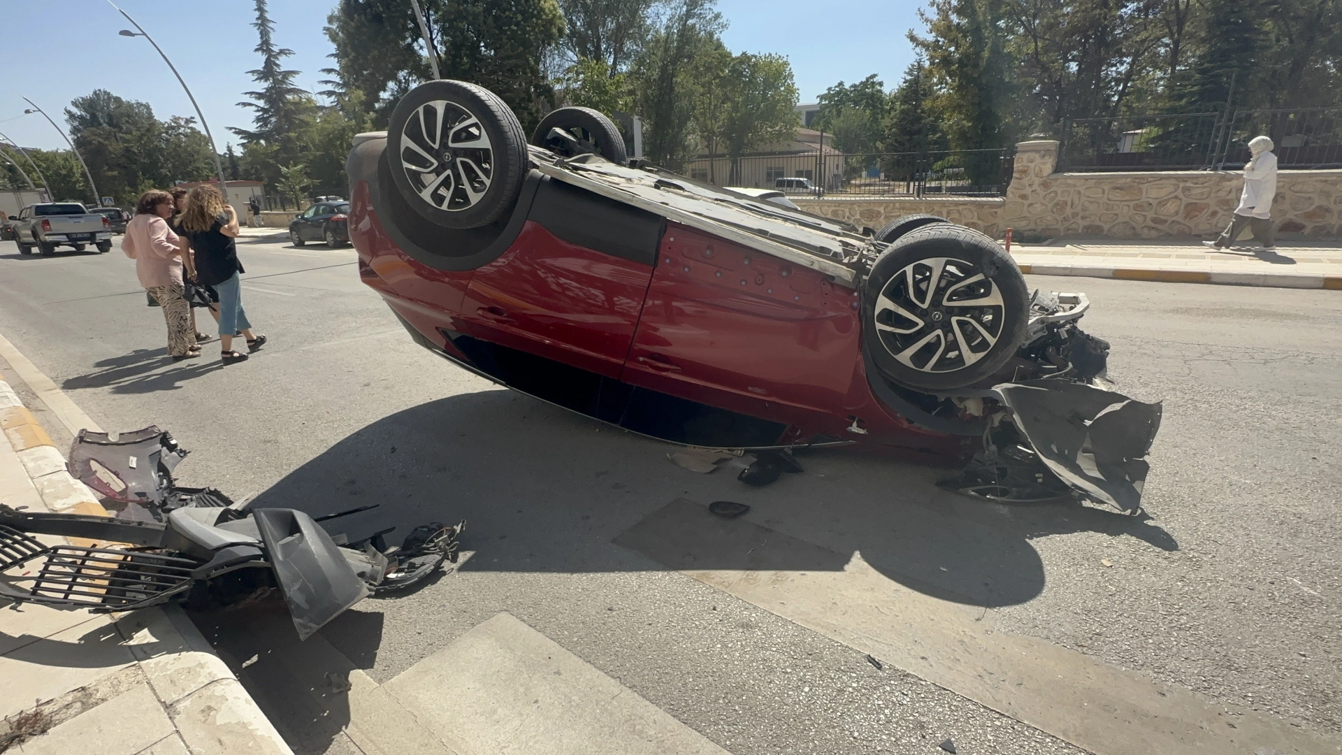 Elazığ'da meydana gelen kazada, hafif ticari araç ile otomobil çarpıştı. Çarpışmanın etkisiyle tekerleği patlayan otomobil, refüje çarpıp ters döndü. Kazada 3 kişi yaralandı. Haber verilmesi üzerine olay yerine sağlık ve polis ekipleri sevk edildi. Yaralılar, ambulanslarla kentteki hastanelere kaldırılarak tedavi altına alındı. Polis, kaza ile ilgili inceleme yaptı.