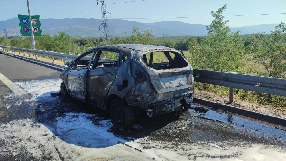 Bursa'nın Orhangazi ilçesinde otoyol üzerinde seyir halindeki bir otomobil motor bölümünden alev aldı. İçindeki 3 kişinin son anda araçtan indiği olayda otomobil kısa sürede alev topuna döndü. Yangın tüpleri ile müdahale edilen otomobildeki yangın, itfaiye ekiplerinin müdahalesi ile söndürüldü. Araç küle döndü.