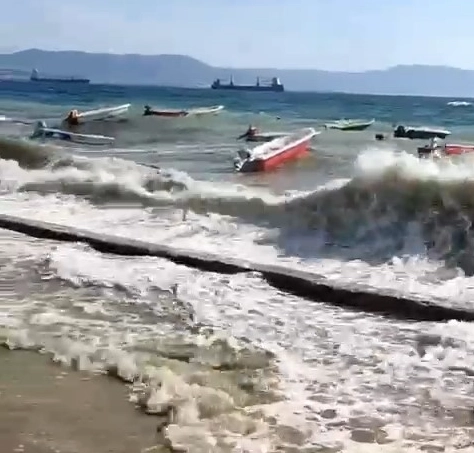 Bursa'da geçtiğimiz günlerde kıyı şeritlerinde etkili olan şiddetli rüzgar denizi taşırmıştı. Gemlik ilçesinde ise rüzgarın etkisiyle kıyıyı aşan dalgalar, tekne üzerindeki iki kişiyi savurdu. O anlar kameraya yansırken, savrulan iki kişi hafif şekilde yaralandı.