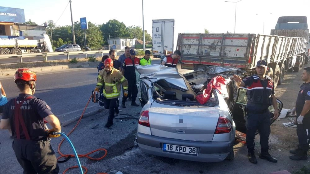 Bursa'nın Karacabey ilçesinde, İzmir'den tatilden dönen ailenin bulunduğu aracın tıra arkadan çarptığı kazada 4 kişi öldü, 2 kişi yaralandı. Kaza, Bursa - İzmir karayolu üzeri Bursa istikameti Karacabey’in Uluabat Mahallesi mevkiinde meydana geldi. Sabaha karşı saat 05.30 sıralarında Bursa - İzmir karayolundan Bursa yönüne seyreden Orhan Çalışkan'ın (46) kullandığı 16 KPD 36 plakalı araç, Uluabat Mahallesi'nde park halinde bulunan ve içerisinde Harun T.'nin (42) uyuduğu 35 BDJ 710 plakalı çekiciye bağlı 35 AJN 345 plakalı dorseye arkadan çarptı.