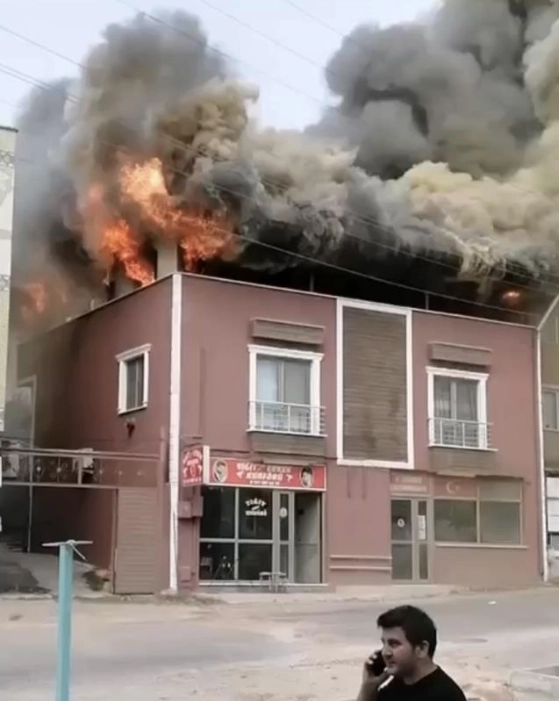 Bursa'da iki katlı bir binanın teras kısmı alevlere teslim oldu. İtfaiye ekiplerinin müdahalesiyle kontrol altına alınan yangın kameralara yansıdı. Yangın, merkez Nilüfer ilçesi Doğanköy Mahallesi'nde bulunan iki katlı bir binanın teras kısmında meydana geldi. Kısa sürede büyüyen alevler çatıyı komple sararken, yoğun duman ilçenin birçok yerinden de görüldü. İhbar üzerine itfaiye ekiplerinin olay yerine gelmesiyle başlayan müdahalede yaklaşık 20 dakikalık çalışma sonrası yangın kontrol altına alındı. Çevredekilere korku dolu anlar yaşatan yangın kameralara da yansıdı. Yangında can kaybı ve yaralı olmadığı öğrenildi. Polis olayla ilgili tahkikat başlattı.