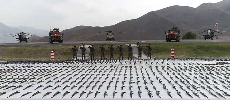 Milli Savunma Bakanlığı, Irak'ın kuzeyinde devam eden ‘Pençe-Kilit Operasyonu'nda ele geçirilen silahların da yer aldığı bir video yayımladı. Yapılan açıklamada, “Kahraman Türk Silahlı Kuvvetlerimiz, Irak'ın kuzeyinde başarıyla devam eden Pençe-Kilit Operasyonu ile terör örgütü PKK'ya büyük darbe indirdi. 6 aydır süren amansız bir mücadele ile teröristleri inlerine gömen Mehmetçik, 17 Nisan'da başlayan operasyon ile bugüne kadar farklı nevide toplam bin 43 adet silahı da ele geçirdi. Operasyon kapsamında 2 adet SA-18 hava savunma füzesi, 40 adet tanksavar füzesi, 36 adet havan, 106 adet RPG-7 roketatar, 22 adet bomba atar, 50 adet Doçka uçaksavar, 31 adet Zagros keskin nişancı tüfeği, 85 adet PKMS makineli tüfek, 519 adet AK-47 piyade tüfeği, 79 adet M-16 piyade tüfeği, 73 adet Dragunov keskin nişancı tüfeği ele geçirildi” denildi.