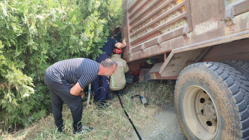 İddiaya göre, Gemlik'ten İznik istikametine seyreden Turgut Akpınar (63) idaresindeki 16 KJ 022 plakalı döküm kumu yüklü kamyon, karşı yönden gelen Hakan Özcan (33) yönetimindeki 11 AJ 420 plakalı, üzerinde 22 ton ağırlığında iki mermer bloğun bulunduğu tır ile kafa kafaya çarpıştı.