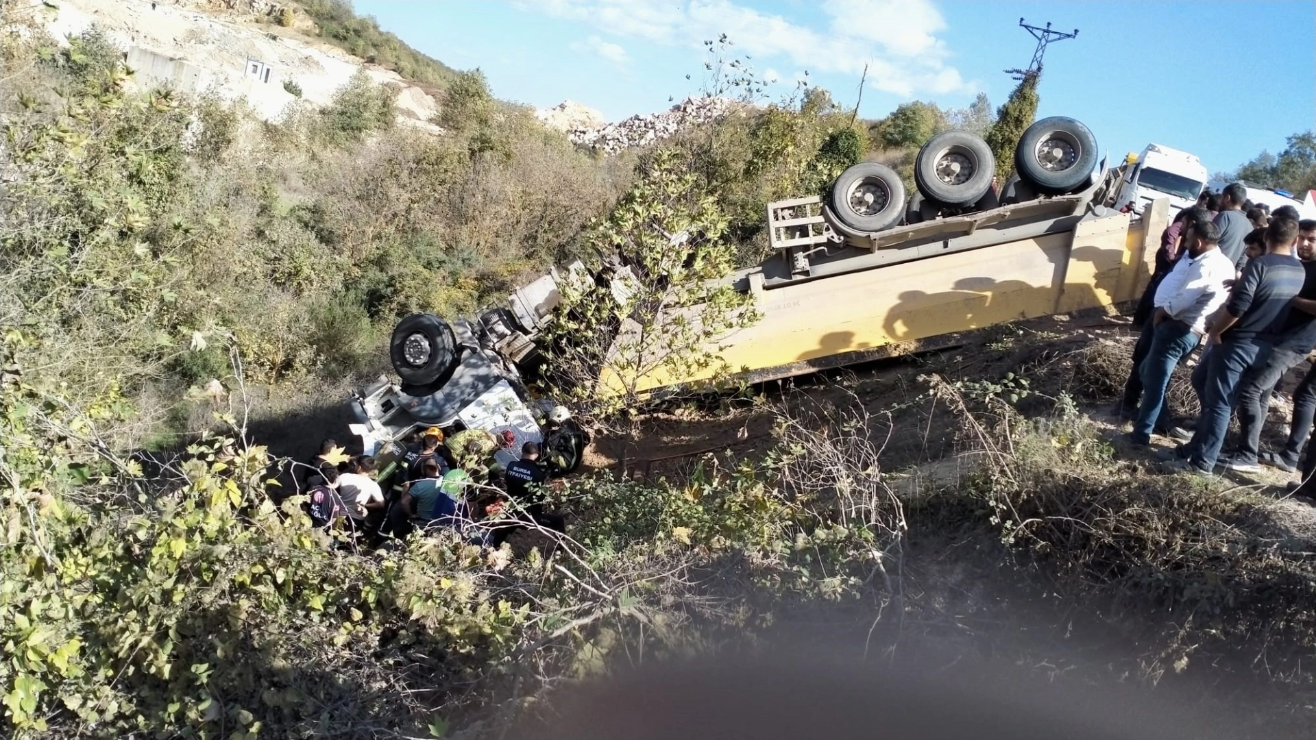 Kaza, merkez Nilüfer ilçesi Maksempınar Mahallesi mevkiinde meydana geldi. Bölgedeki hafriyat döküm sahasına giden bir inşaat firmasına ait hafriyat kamyonu viraja geldiği esnada kontrolden çıktı. Hızla ilerleyen araç kuru dere yatağına devrildi Kazayı gören çevredekiler yaralının yanına koşarken, olay yerine sağlık, itfaiye ve polis ekibi sevk edildi. İtfaiye ekipleri araçta sıkışan kamyon şoförünü çıkarıp sağlık ekiplerine teslim etti. Hastaneye kaldırılan sürücünün durumunun kritik olduğunu öğrenilirken, kazayla ilgili tahkikat başlatıldı.