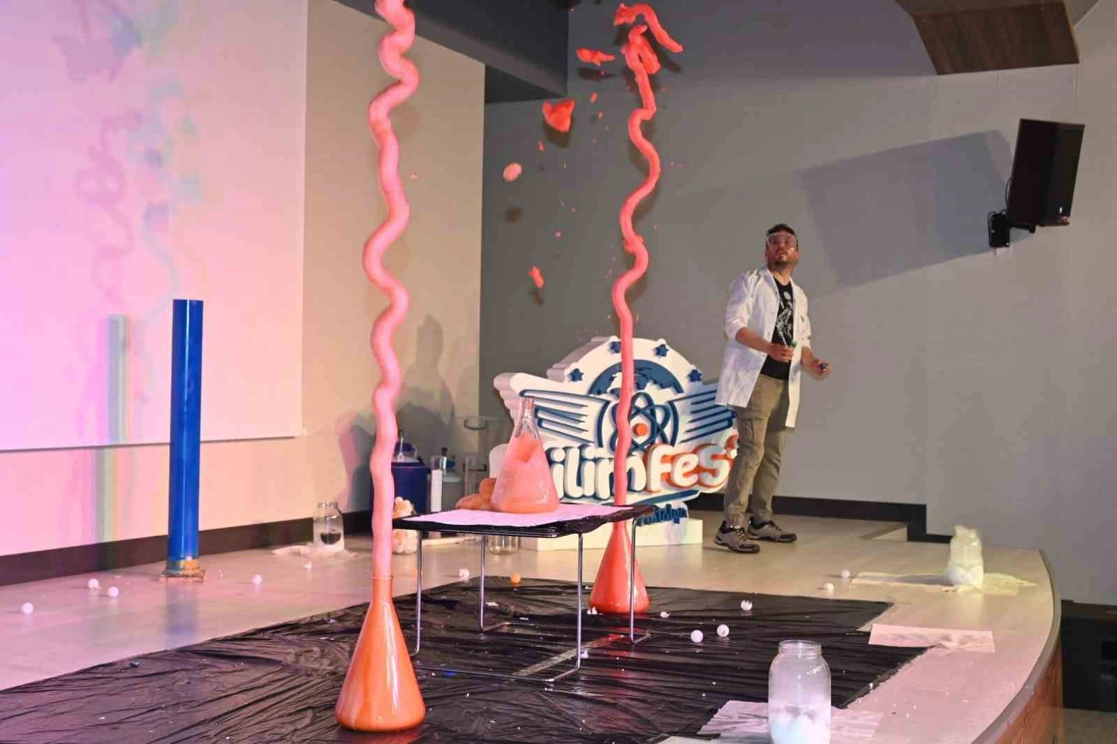 Bilim Show etkinlikleri kapsamında gerçekleştirilen açık hava basıncı, fil dişi macunu ve sis makinesi deneyleri katılımcılardan yoğun ilgi gördü.