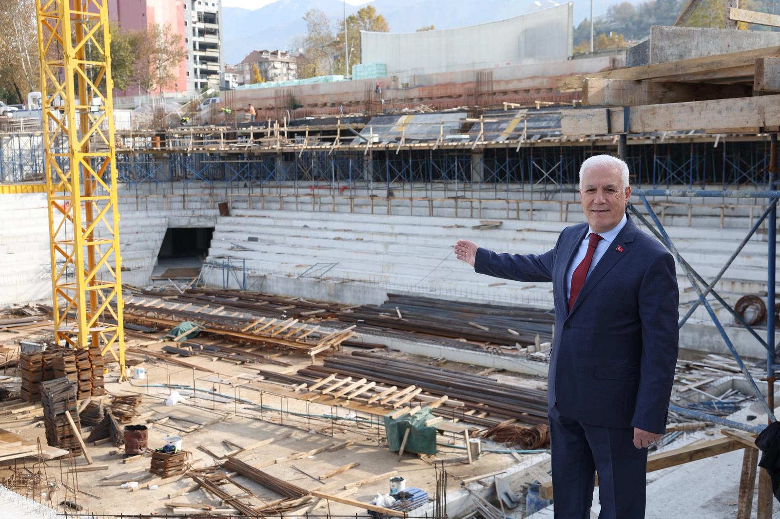“TÜRKİYE’DE ÖRNEK BİR SPOR SALONU YAPMAYI PLANLIYORUZ” İnşaat çalışmalarını yerinde inceleyen Bursa Büyükşehir Belediye Başkanı Mustafa Bozbey, yetkililerden detaylı bilgi aldı. Bursa’yı sporun başkenti yapmak istediklerini ve bu tesisle hedefe bir adım daha yaklaşacaklarını söyleyen Başkan Mustafa Bozbey, “Atatürk Spor Salonu projesi, geçmiş dönemde 1.000 kişilik kapasiteyle planlanmış. Daha sonra kapasite 3.000 kişiye çıkartılmış. Biz göreve geldikten sonra kapasiteyi 5.016’ya yükselttik. İhtiyaç olacak nitelikte bir sayı belirledik. Türkiye’ye örnek bir spor salonu yapmayı planlıyoruz. İnşaat hızla devam ediyor. Voleyboldan basketbola ve diğer etkinliklere kadar birçok organizasyona ev sahipliği yapacak” diye konuştu.