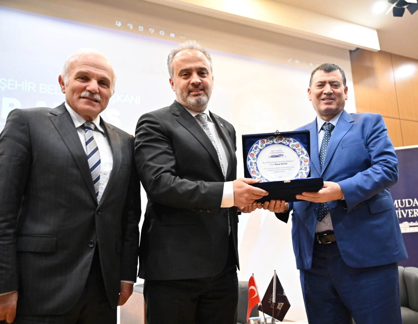 Öğrencilerin sorularını da yanıtlayan Başkan Alinur Aktaş’a Mudanya Üniversitesi Mütevelli Heyeti Başkanı Gıyasettin Bingöl tarafından teşekkür plaketi verildi. Söyleşiden önce, Bursa Büyükşehir Belediyesi Gençlik ve Spor Hizmetleri Daire Başkanlığı’nın çalışmalarıyla ilgili bir sunum gerçekleştirildi ve çekilişle öğrencilere hediyeler verildi.