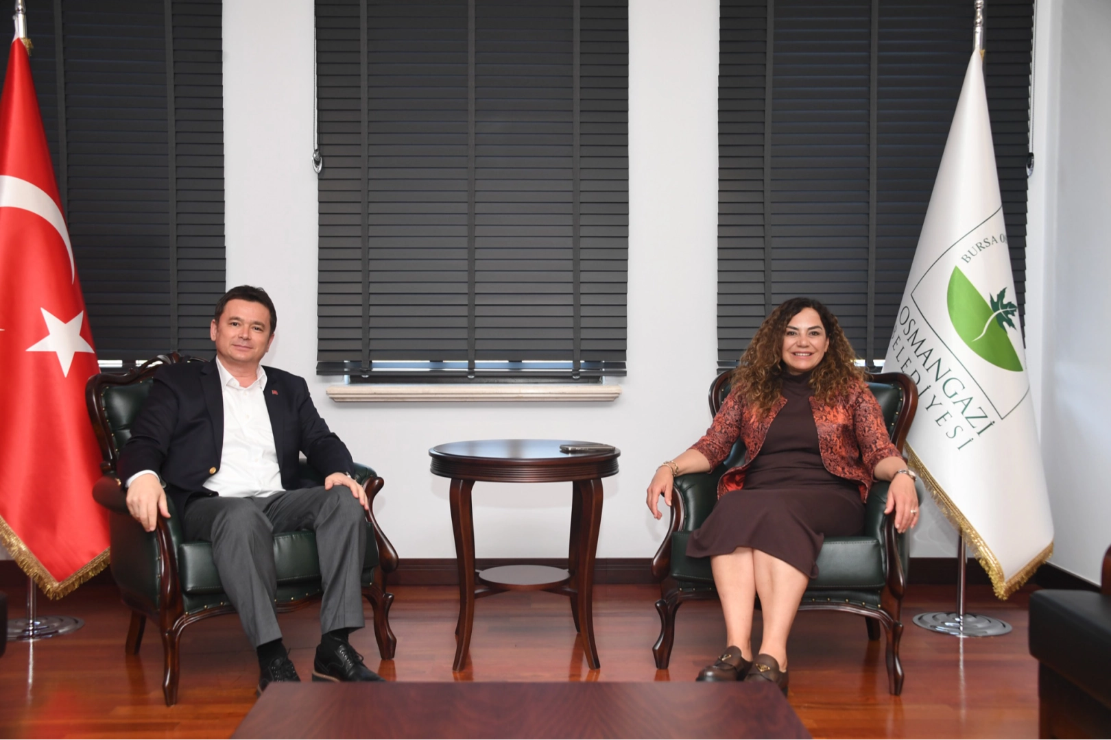 Marmara Belediyeler Birliği Toplantısı için Bursa’ya gelen Tekirdağ Büyükşehir Belediye Başkanı Candan Yüceer, Bilecik Belediye Başkanı Melek Mızrak Subaşı, Büyükçekmece Belediye Başkanı Hasan Akgün ve Kartal Belediye Başkanı Gökhan Yüksel, Osmangazi Belediye Başkanı Erkan Aydın’ı ziyaret etti. Belediye binasındaki makamında ağırladığı misafirlerine sosyal belediyecilik anlayışıyla yapmış oldukları çalışmalar hakkında bilgiler veren Başkan Aydın, mazbatayı almalarının ardından geçen her günü, Osmangazi’ye ve Osmangazili yurttaşlara en güzel hizmetleri sunabilmek için geçirdiklerini söyledi. Misafir belediye başkanları da kendi il ve ilçelerinde yaptıkları çalışmalarla ilgili bilgiler verdi.