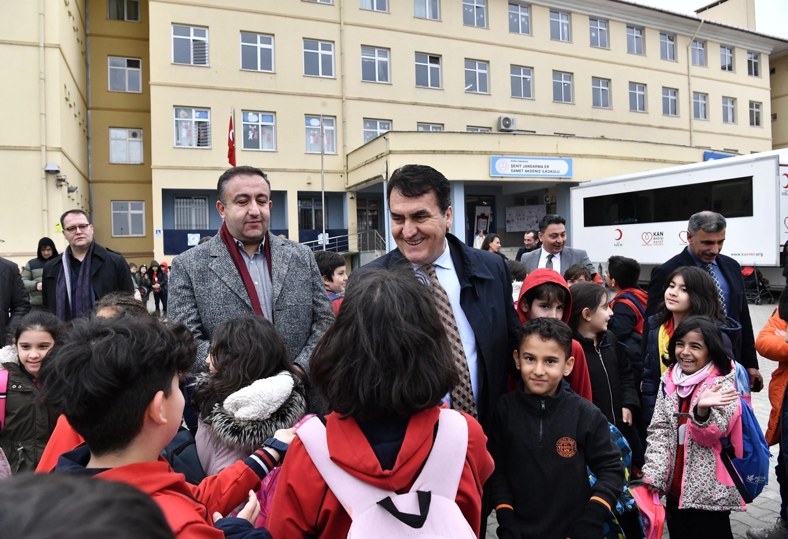 Osmangazi Belediye Başkanı Mustafa Dündar, Şehit Jandarma Er Samet Akdeniz İlkokulu’nu ziyaret etti. Kendisini sevgi gösterileri ve çiçekler ile karşılayan öğrencilerle eğlenceli dakikalar geçiren Başkan Dündar, okul bahçesinde Kızılay tarafından düzenlenen kan bağısı kampanyasına da destek verdi.