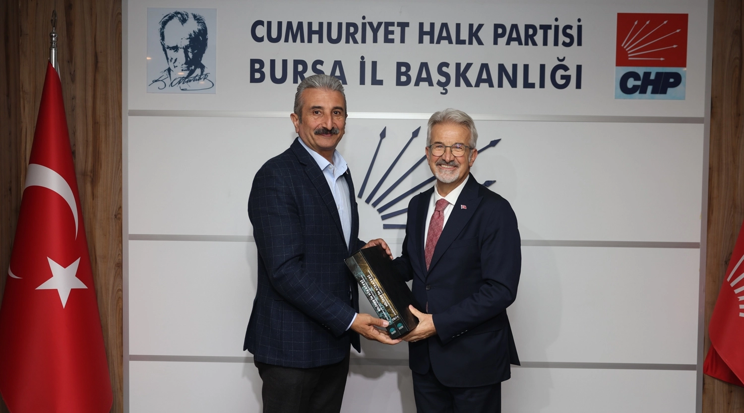 Başkan Erdem ziyarette CHP Bursa İl Başkanı Nihat Yeşiltaş’a Nilüfer’in Hikayesi kitaplarını armağan etti.
