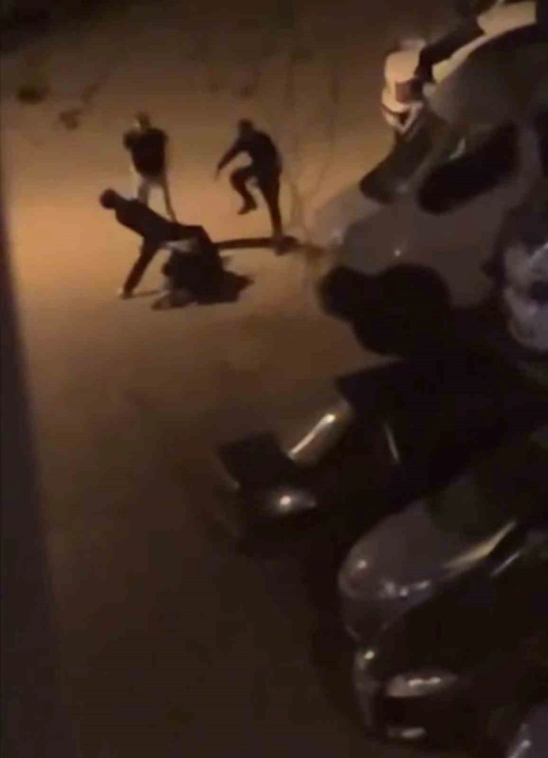Baygın şahsa yerde de tekmeler atan 4 şüpheli, cep telefonu kamerası ile kaydedildi.