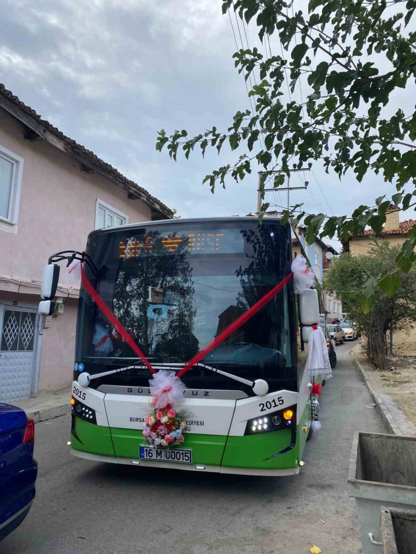Bursa’nın Orhaneli ilçesinde dünya evine giren Safa ve Buse çiftinin düğün konvoyu ilginç bir görüntüye sahne oldu. Çiftin yakınları tarafından organize edilen konvoyda şehir içi hatta çalışan özel halk otobüsü gelin arabası gibi süslenerek yer aldı. Çiçek ve kurdelelerle donatılan otobüs, konvoydaki diğer araçlarla birlikte klaksonlar eşliğinde ilçe turu attı. Renkli anlar düğüne katılanların cep telefonu kameralarına yansırken, gelin ve damadın mutluluğu yüzlerine yansıdı.