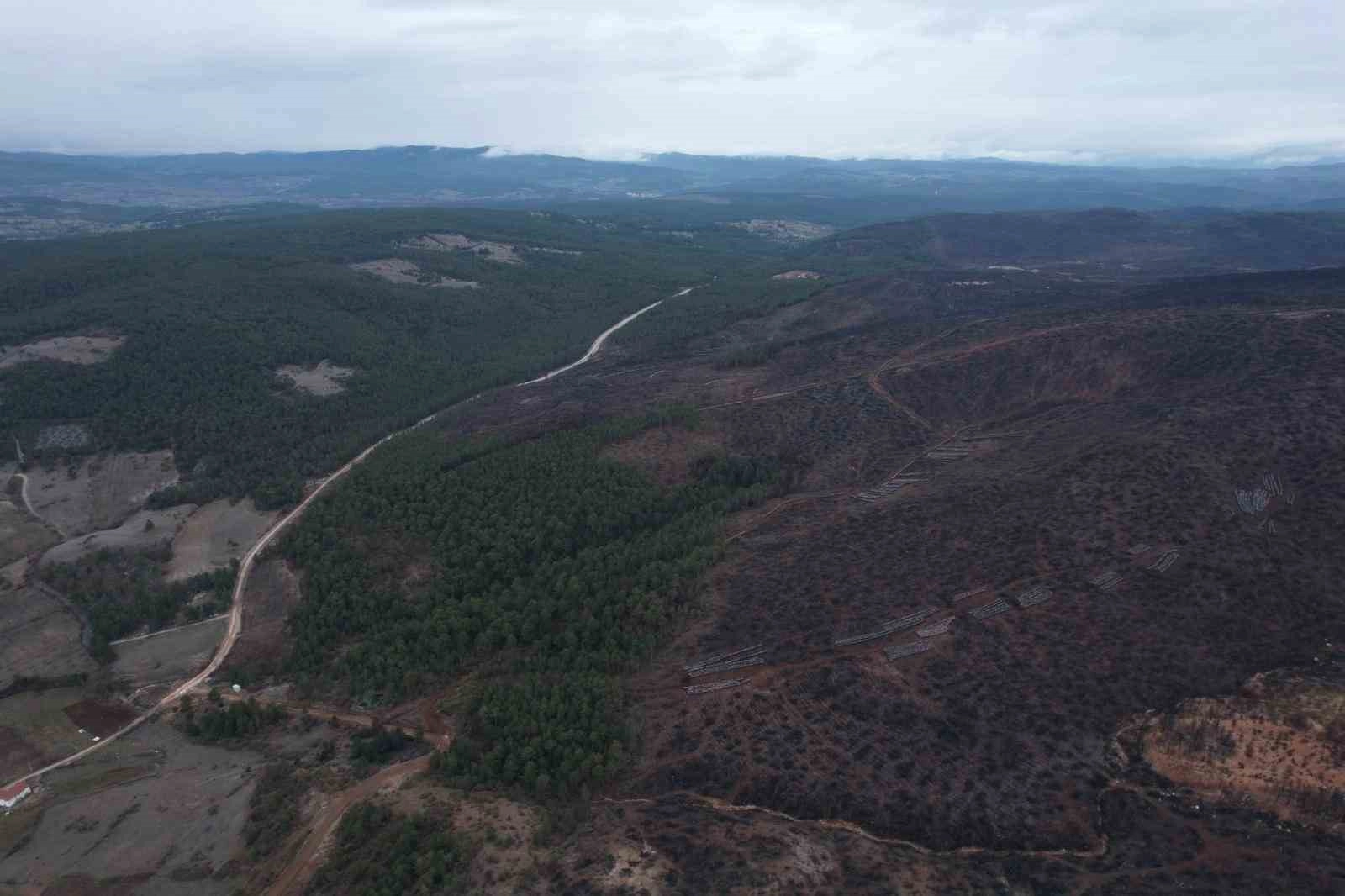 Aralık 2025’te yanan alanların yeniden yeşillendirilmesi için tohum atma, teras oluşturma ve fidan dikim çalışmalarında devasa işler yapıldı. Harmancık’ta Bursa’dan İtalya’ya uzanacak mesafe kadar yani 2 bin 327 kilometre teras ilmek ilmek işlendi. 1 milyon 617 bin 921 fidan toprakla buluşturulurken, 17 bin kilogram tohum ekildi. Bölgedeki son durum ise İHA ekibi tarafından dron ile havadan görüntülendi.