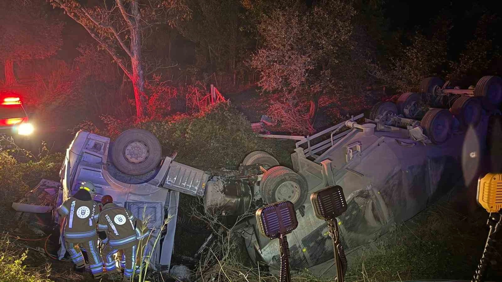 Bursa’da tırın şarampole yuvarlandığı kazada 2 kişi yaralandı.