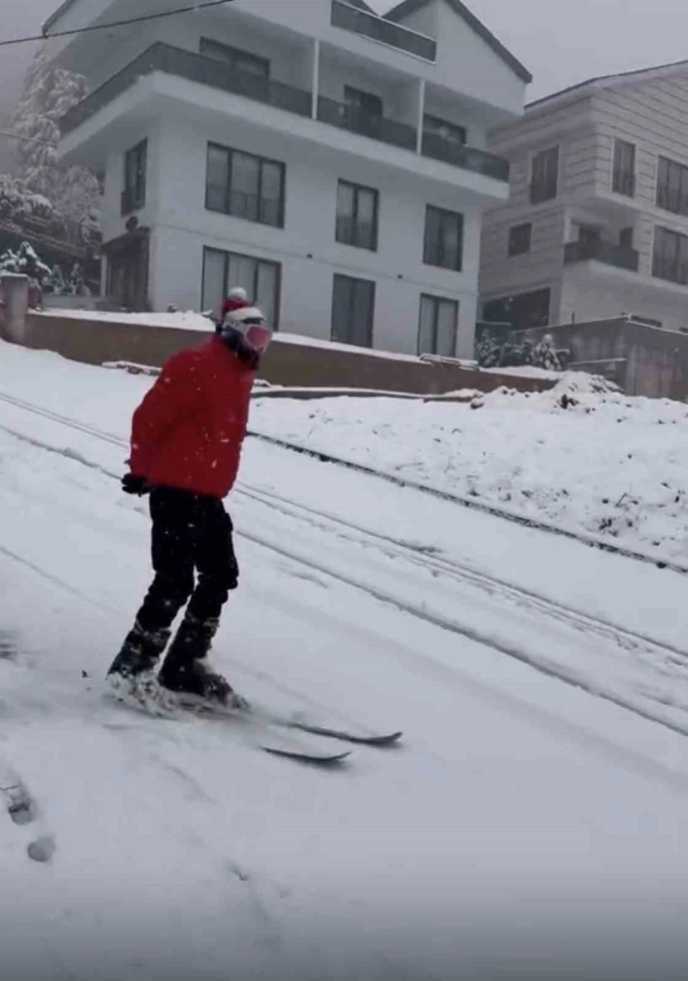 Bursa’da yağan karı fırsat bilen vatandaş şehir merkezinde kayak yaptı