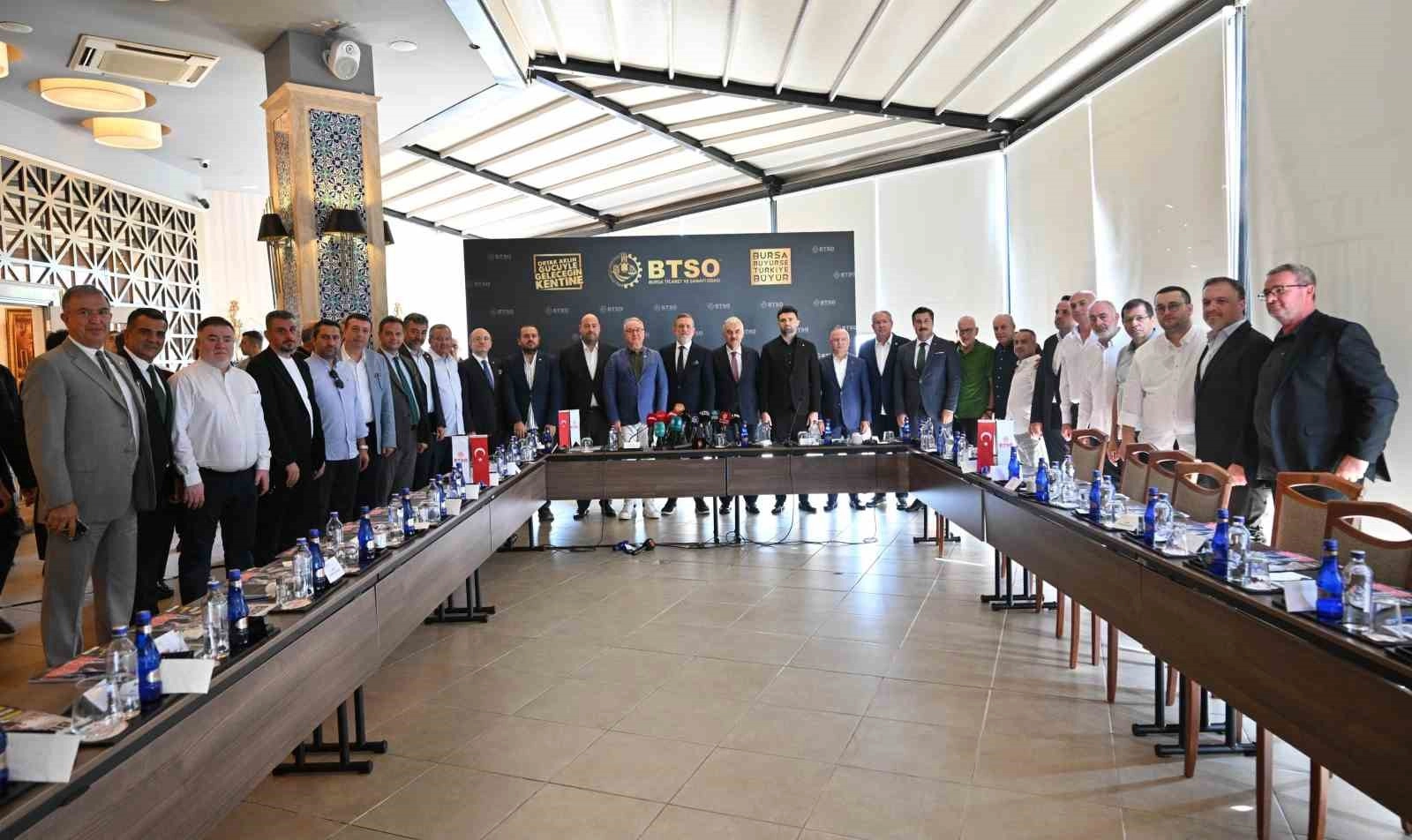 BTSO Altıparmak Hizmet Binası’nda düzenlenen toplantıya Bursa Valisi Erol Ayyıldız, BTSO Yönetim Kurulu Başkanı İbrahim Burkay, Bursaspor Başkanı Enes Çelik, Bursaspor Divan Kurulu Başkanı Gökhan Tuzlacıoğlu, AK Parti Bursa İl Başkanı Davut Gürkan, OSB Yönetim Kurulu Başkanları ve sponsor firma temsilcileri katıldı. BTSO Yönetim Kurulu Başkanı İbrahim Burkay, Bursaspor’un Bursa için her zaman bir futbol kulübünden daha fazlasını ifade ettiğini söyledi. Bursaspor’un kentin ortak duygusu, heyecanı ve hafızası olduğunu belirten Başkan Burkay, "Bursaspor’un güçlü olduğu dönemlerde, Bursa daha özgüvenli, daha kenetlenmiş, daha umut dolu bir şehir olur. Bu yüzden Bursaspor’a verilen her destek aslında Bursa’nın geleceğine, birliğine ve ruhuna yapılan bir yatırımdır. Bugün burada, bu büyük sevdanın, bu köklü aidiyetin ve bu eşsiz hikâyenin bir parçası olduğumuzu bir kez daha göstermek için bir araya geldik" dedi.