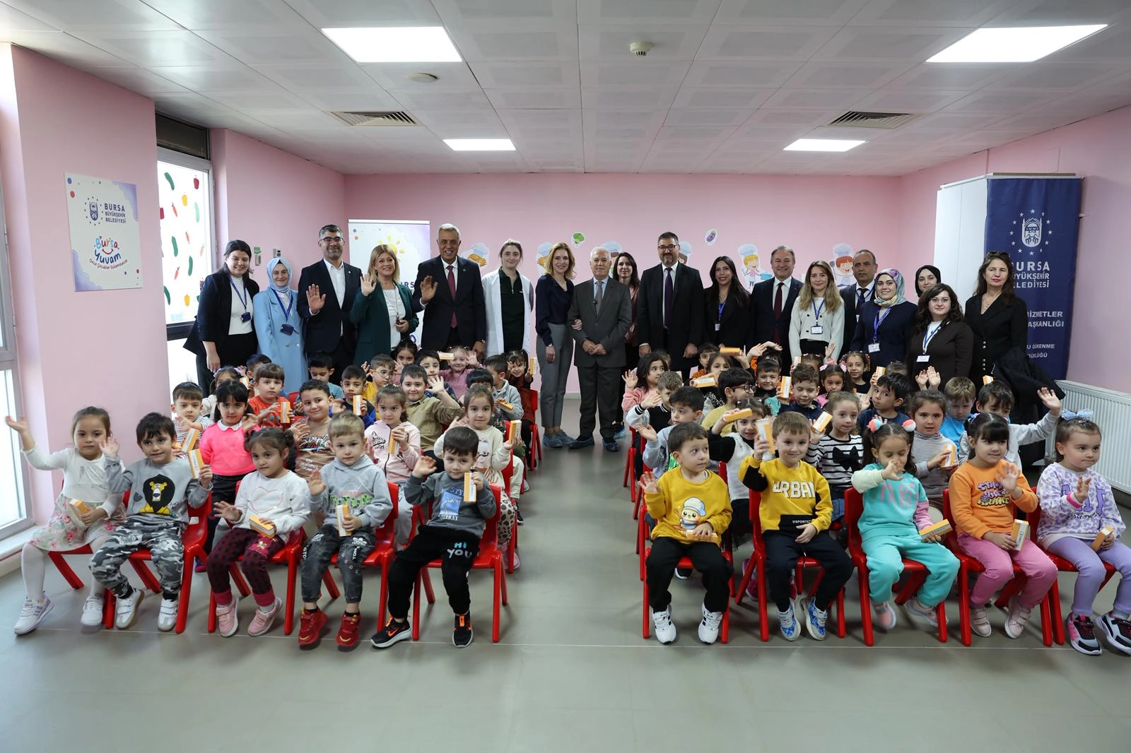 Bursa Büyükşehir Belediye Başkanı Mustafa Bozbey ve eşi Seden Bozbey de Gürsu’daki Kurtuluş Bursa Yuvam Çocuk Etkinlik Merkezi’ni ziyaret ederek çocuklarla bir araya geldi. Çocuklarla birlikte uzman hekimlerin doğru fırçalama tekniklerini dinleyen Başkan Mustafa Bozbey, etkinliğin sonunda miniklere diş fırçası ve diş macunu hediye etti.