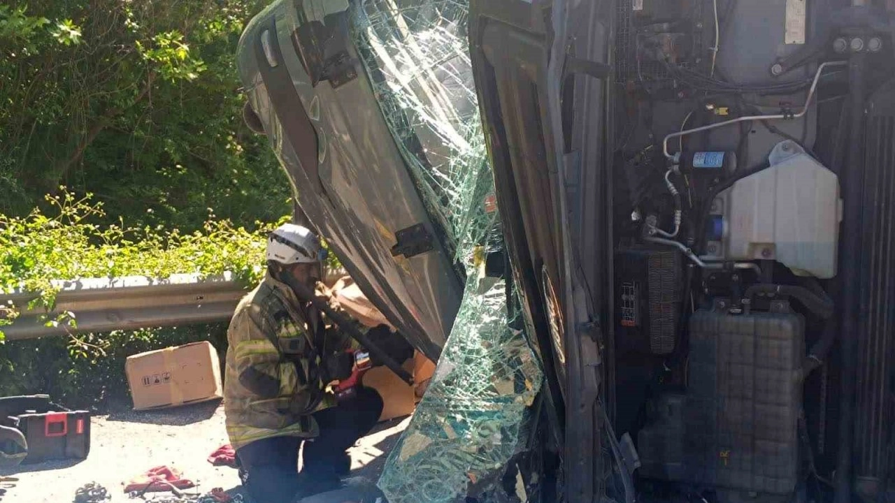 Bursa’nın İnegöl ilçesi Mezit boğazında meydana gelen kazada devrilen tırın sürücüsü hayatını kaybetti.