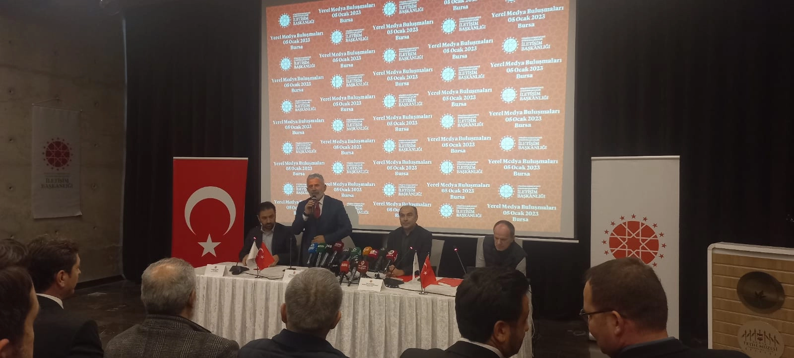 Türkiye’de son zamanlarda yoğun bir şekilde dezenformasyona maruz kalındığının altını çizen İletişim Başkanlığı Bursa Bölge Müdürü Ali Fuad Gölbaşı, “İletişim Başkanlığımızın Medya Derneği ile iş birliğiyle yürüttüğü ‘Yerel Medya Buluşmaları’ projesi çerçevesinde, bugün Bursa’da yerel medya temsilcileri ile geldik. Proje Bursa Bölge Müdürlüğümüzün de içinde yer aldığı 9 ayrı bölgede uygulanmaktadır. Bugün burada ele alınacak konu ‘Dezenformasyonla nasıl mücadele edilir?’. Son yıllarda cumhurbaşkanımızın vizyoner bakış açısı, Türkiye’nin küresel ve bölgesel ölçekteki politika tercihleri ve buna benzer hamleler neticesinde Türkiye’nin yoğun bir şekilde maruz kaldığı bir durum söz konusu.