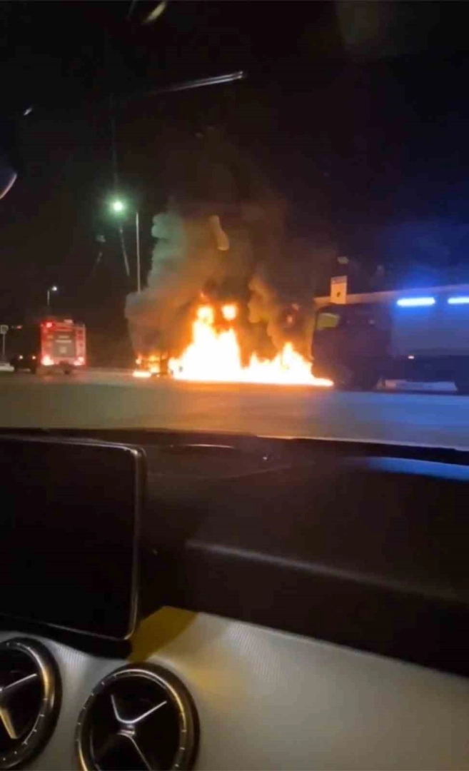 Bursa’da park halindeki hafif ticari araç alev alev yandı.