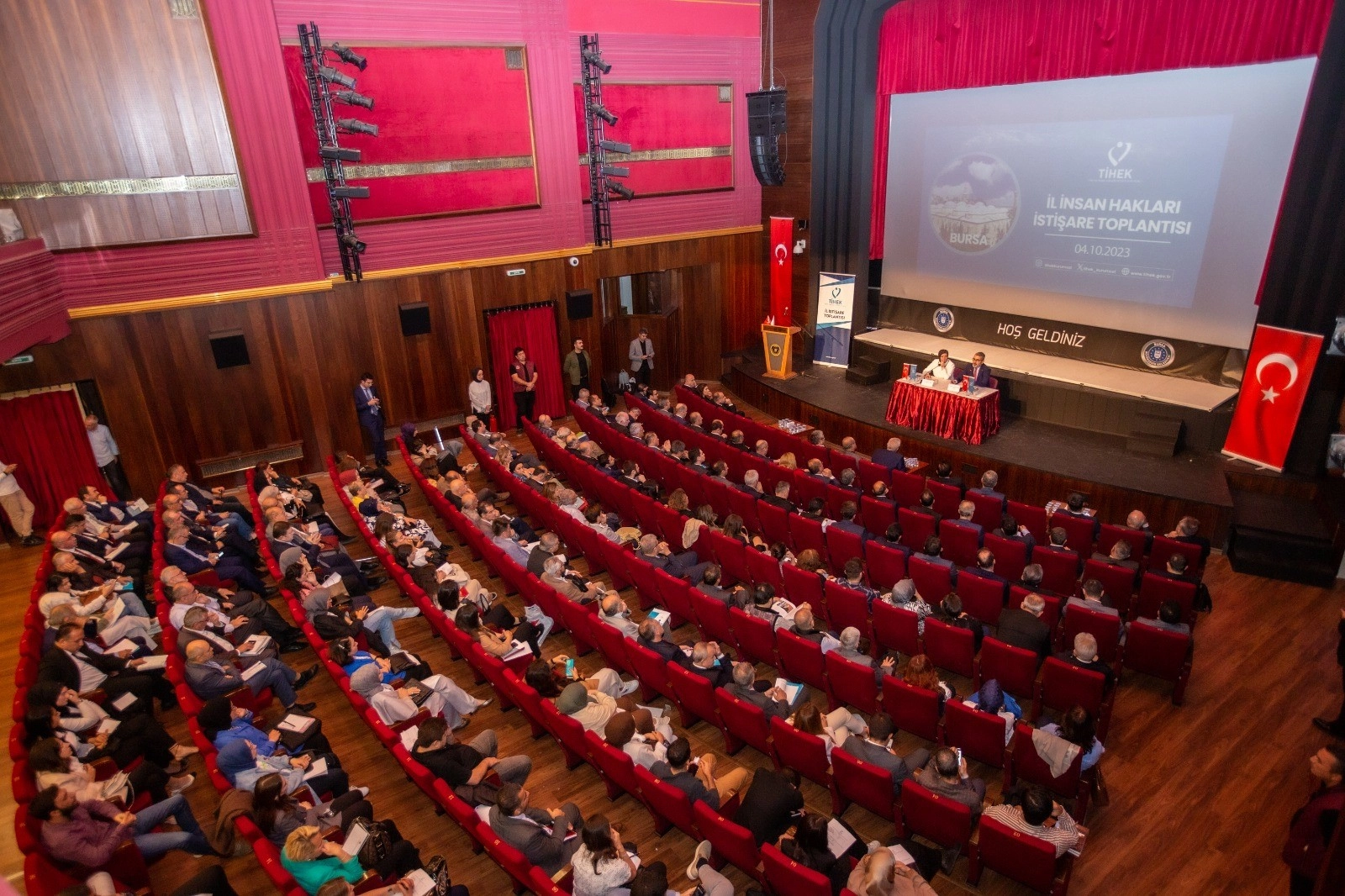 Türkiye İnsan Hakları ve Eşitlik Kurumu (TİHEK) öncülüğünde, insan hakları sorunlarını tartışmak, bilgi ve görüş alışverişinde bulunmak amacıyla Bursa’da İl İnsan Hakları İstişare Toplantısı gerçekleştirildi. Prof. Dr. Muharrem Kılıç, Kurul Üyesi Av. Zennure Ber, Başkan Yardımcısı Nimet Özkaya Sevim ile Kurum Uzman ve Uzman Yardımcılarından oluşan heyet ilk olarak Bursa Vali Yardımcısı Rıza Gençoğlu’nu, ardından Bursa Cumhuriyet Başsavcısı Ramazan Solmaz’ı ziyaret etti. Görüşmelerde Bursa İlindeki insan hakları konuları ele alındı. Ziyaretlerin ardından Tayyare Kültür Merkezi’nde kamu kurum ve kuruluşları, sivil toplum kuruluşları, sendikalar, sosyal ve mesleki kuruluşlar, yükseköğretim kurumları, basın ve yayın kuruluşları, araştırmacılar ve ilgili diğer kişi, kurum ve kuruluşların katılımıyla İl İnsan Hakları İstişare Toplantısı gerçekleştirildi. Vali Yardımcısı Rıza Gençoğlu toplantıda yaptığı konuşmada, “Bizler “Yaratılanı yaratandan ötürü hoş görme” kültürüne sahip bir milletiz. Biz bu kültürden geliyoruz. Bizim medeniyet kodlarımızın arasında devleti yaşatmak için insanı yaşatma şartı vardır. Bizim anlayışımızda insan, eşref-i mahlûkattır. Cenabı Allah’ın yarattığı en şerefli mahlûktur. Her hakkına riayet edilmesi gereken ve incitilmemesi gereken bir varlıktır. Bizim inancımızda insan hakkının karşılığı olarak kul hakkı diye bir kavram vardır. Hz.Mevlana, ‘Dostum insanın canı değerli bir incidir, insan değer bakımından arştan daha üstündür, insan düşünceye sığmayacak kadar büyüktür. Bu paha biçilmez insanın gerçek değerini, hakikatini söylesem ben de yanarım dünya da yanar’ derken insanın bizatihi varlık olarak değerinin kıymetini ve büyüklüğünü çok güzel ifade eder. İnsan olarak değerimizi bilmemiz lazım ki haklarımızın neler olduğunu iyi öğrenelim ve onların korunması için gerekli mücadeleyi verelim" dedi.