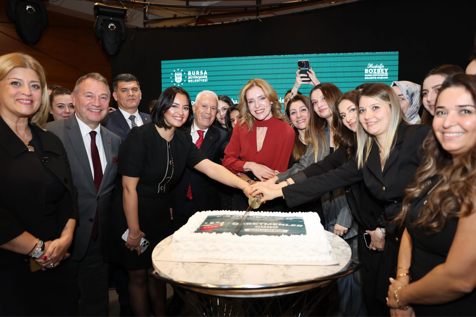“HEPİMİZİN HAYATINDA BİR ÖĞRETMENİN İZİ VARDIR” Eğitimde fırsat eşitliğini, her çocuğun eşit koşullarda eğitim almasını ve öğretmenlerin yanında durmayı bir sorumluluk olarak gördüklerini anlatan Başkan Mustafa Bozbey, “Bursa’nın geleceğine dair kurduğumuz her hayalde; öğretmenin emeği, öğrencinin umudu ve eğitimde adalet inancımız bize yol göstermektedir. 24 Kasım bir minnet, farkındalık ve hatırlama günüdür. Hepimizin hayatında bir öğretmenin izi vardır. Başta Başöğretmenimiz Gazi Mustafa Kemal Atatürk olmak üzere aramızdan ayrılan tüm öğretmenlerimizi rahmet, minnet ve şükranla anıyorum. Tüm öğretmenlerimizin Öğretmenler Günü’nü kutluyorum. Varlığınız bu kente güç katıyor” diye konuştu. Kutlama yemeğinde Kent Orkestrası sahne alırken, günün anısını pasta kesildi. Etkinlik toplu hatıra fotoğraf çekilmesinin ardından son buldu.