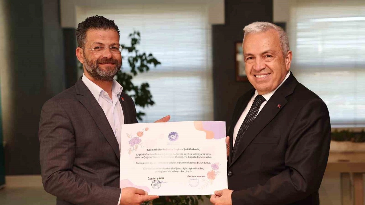Ziyaretin sonunda CHP Nilüfer İlçe Başkanı Özgür Şahin, Nilüfer Belediye Başkanı Şadi Özdemir adına Çağdaş Yaşamı Destekleme Derneği’ne yaptıkları bağışın belgesini, Başkan Şadi Özdemir’e verdi.