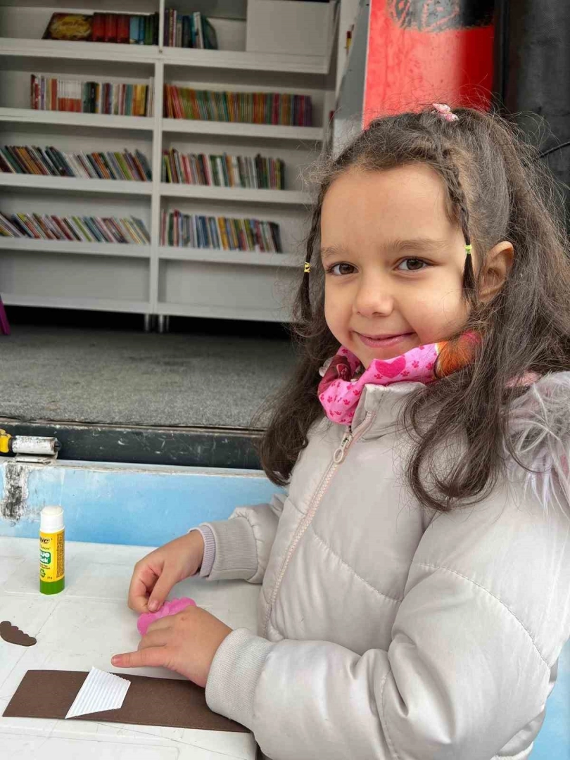 Osmangazi Belediyesi’nin merkeze uzak mahallerdeki çocukları kitap ile buluşturmak amacıyla hayata geçirdiği Gezici Kütüphane’de düzenlenen ‘Hayal Et Tasarla’ atölyesine katılan çocuklar kitap ayracı yaptı.