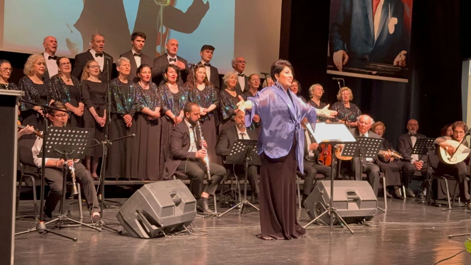 Programın sonunda Rüştü Burlu'nun oğlu Murat Burlu, torunları ve çalışma arkadaşları da sahneye davet edilerek 'Şimdi Uzaklardasın' eseri seslendirildi.