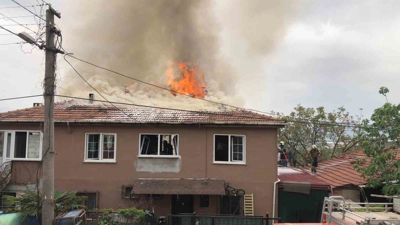 Çatısı yanan evin Ata Mahallesi önceki dönem muhtarlarından Mualla Çiğdem’e ait olduğu öğrenildi.