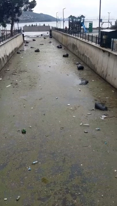 Yağmurla birlikte derede bulunan çöp poşetleri ve dağınık çöpler suyla birlikte denize doğru aktı. Bataklığa dönen deredeki kirlilik dikkat çekerken denize dökülüp Gemlik körfezinde su yüzeyine çıkan poşetler körfezi adeta çöplüğe çevirdi. Gemlik körfezindeki çöplerin deniz süpürgesi ile toplanacağı belirtildi.