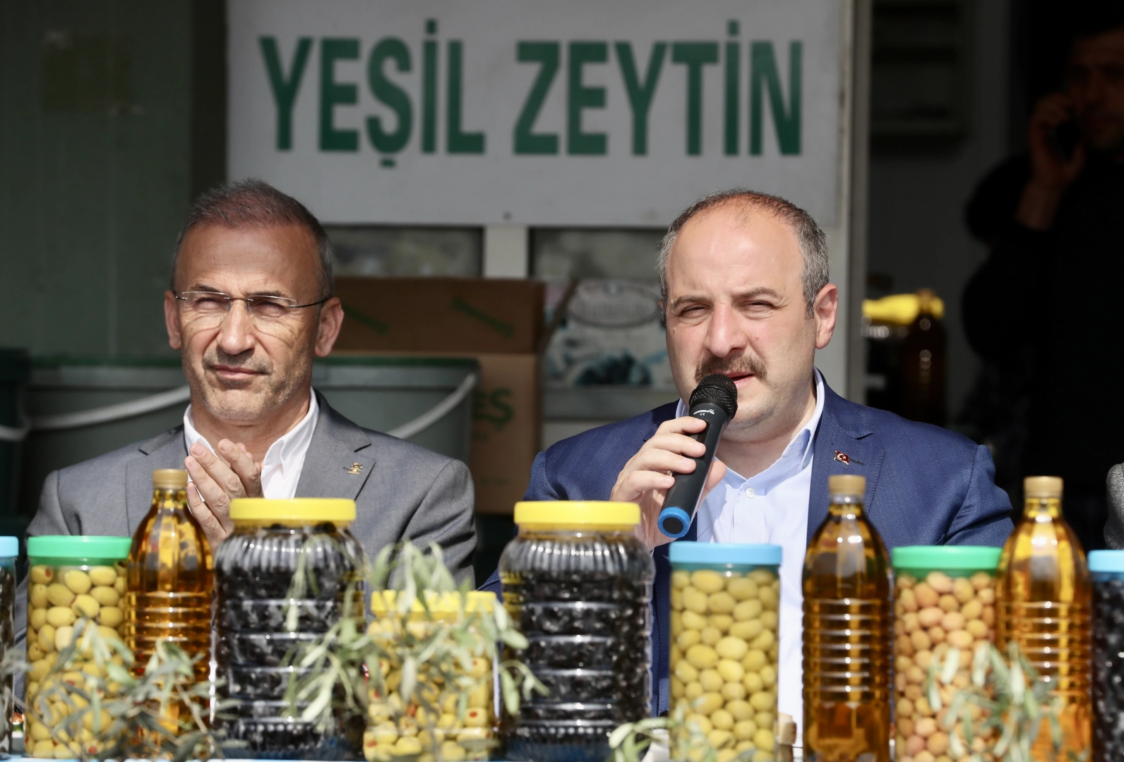 Bursa programı kapsamında Gemlik Zeytin Hali'ni ziyaret eden Bakan Varank, zeytinci esnafla sohbet etti, Gemlik Zeytini için Avrupa Birliğinde yapılan coğrafi işaret tescili hakkında bilgi verdi.