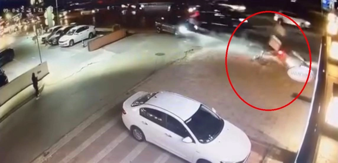 Kazada metrelerce savrulan motosiklet sürücüsü yaralanarak hastaneye kaldırıldı. O anlar ise güvenlik kamerasına saniye saniye yansıdı.