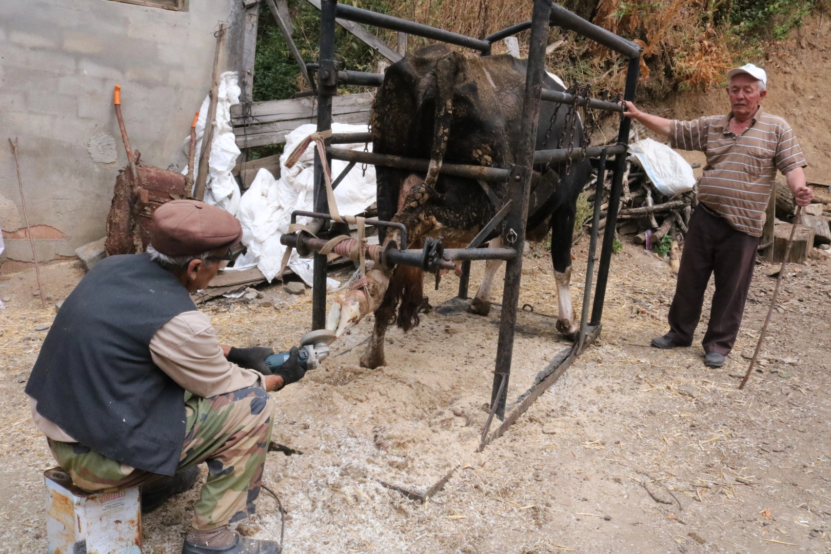 Bursa’nın Keles ilçesi Pınarcık köyünde baba mesleğini devam ettiren 70 yaşındaki Halil Oruç, doğada az gezen ya da gezemeyen besi ve süt ineklerinin tırnaklarını keserek bakım yapıyor. Doğada gezen hayvanların tırnaklarının bir şekilde kırıldığını ya da törpülendiğine dikkat çeken Oruç, dışarı çıkmayan hayvanların periyodik zamanlarda tırnak bakımlarının yapılması gerektiğini ifade etti. Tırnak sağlığının büyükbaş hayvanlar için olmazsa olmaz olduğunu anlatan Oruç, tırnaktan doğacak rahatsızlıkların hayvanları ölüme kadar götürebileceğini sözlerine ekledi.
