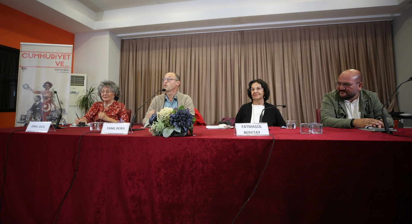 Nilüfer Belediyesi Kütüphane Müdürlüğü tarafından düzenlenen ‘Cumhuriyet ve…’ temalı Kütüphane Günleri, atölye çalışmaları ve söyleşilerle devam ediyor. Akkılıç Kütüphanesi’nde yapılan söyleşide bu kez; ‘Cumhuriyetin Düşünsel ve Siyasal Yaşamı’ ele alındı. Yazar Emel Akal ve Tanıl Bora ile akademisyenler Fatmagül Berktay ve Mete Kaan Kaynar’ın konuşmacı olarak katıldığı söyleşiyi, Nilüfer Belediye Başkanı Turgay Erdem, eşi Zeynep Terzioğlu Erdem ve çok sayıda katılımcı izledi.