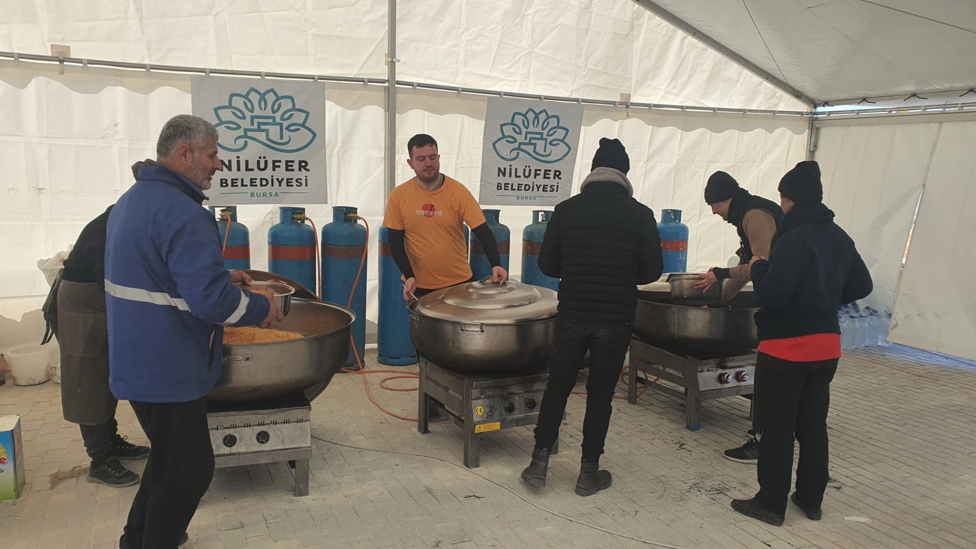 Büyük yıkımın yaşandığı Kahramanmaraş merkezli iki depremin ardından bütün Türkiye’de olduğu gibi Nilüfer’de de yapılan yardımlar her geçen gün ihtiyaçlara göre genişletilerek sürdürülüyor. Bölgeye şimdiye kadar 200’ü aşkın yardım malzemesi taşıyan tır gönderen Nilüfer Belediyesi, en acil ihtiyaç olan yemek konusunda da bir çalışma başlattı. Hafta sonunda Hatay’ın Samandağ ilçesinde aşevi kuruldu. 5 aşçı, 6 kurulum ekibi, kaynakçı, elektrikçi ve su tesisatçısıyla birlikte hizmet veren aşevinde sabahları sıcak çorba, öğlen ve akşamları da sıcak yemek dağıtımına başlandı. Atatürk Sahil Parkı’ndaki aşevine gelenlerden isteyenler yemeklerini orada yiyor, isteyenler de kaplarla evlerine götürebiliyor. Nilüfer Belediyesi Başkan Yardımcıları Zafer Yıldız ile Mehmet Temirtaş da aşevinin çalışmalarına katıldı. Bölgeye geçen hafta gönderilen Nilüfer Belediyesi’nin gönüllü çalışanları ile sağlık ekibi de afetzedelere destek olmak için çalışmalarını sürdürüyor. Nilüfer Belediyesi yine Hatay Samandağ’da kısa sürede bir çadırkent kurmak için de hazırlıklarını yapıyor. Bölgede ilk etapta üç sahra çadırı kuruldu, 10 adet de konteyner gönderildi. Bölgeye ilk etapta toplam 60 konteyner göndermeyi planlayan Nilüfer Belediyesi, 150 çadırı da kısa sürede kurarak depremzedeleri yerleştirecek. Nilüfer Belediyesi ayrıca yardımseverlerin de desteğiyle bin adet yatak, nevresim, battaniye, çok sayıda soba, su tankeri, bin adet musluklu bidon, odun, dezenfektan malzemesi gibi ihtiyaçları da bölgeye göndermeye hazırlanıyor.