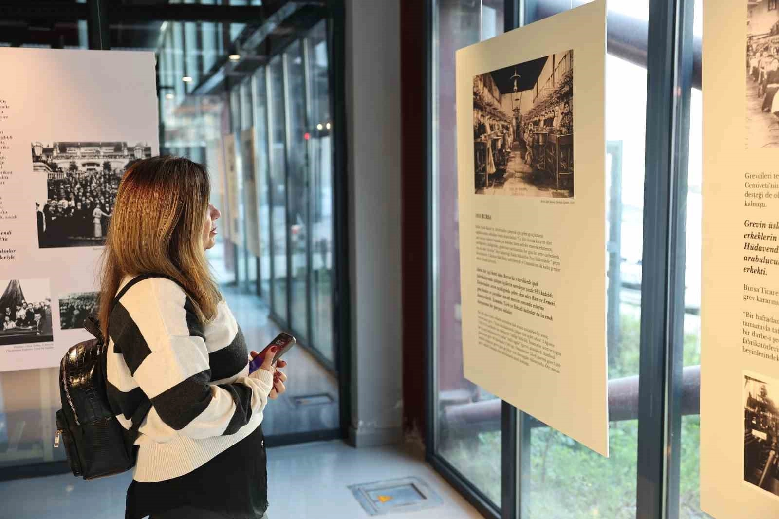 Sergi, 1910 yılında Kopenhag’da düzenlenen Uluslararası Emekçi Kadınlar Konferansı’nda Clara Zetkin ve arkadaşlarının Dünya Kadınlar Günü fikrini ortaya attığı dönemde, Bursa’da ipek işçisi kadınların grevde olduğu gerçeğini hatırlatarak, kadın emeğinin tarihi mücadelesine dikkat çekiyor.