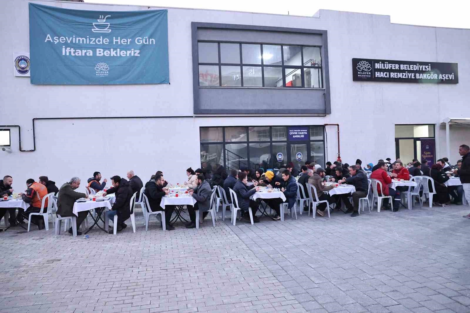 Nilüfer Belediyesi, aşevinde her gün 4 çeşit yemekten oluşan iftar menüsüyle 450 ila 500 kişiye iftar veriyor. Vatandaşlar da Ramazan ayının bereketini paylaşarak birlikte iftar yapmanın mutluluğunu yaşıyor.