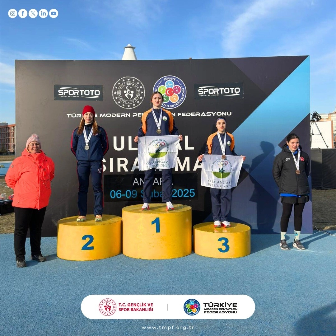 Türkiye Modern Pentatlon Federasyonu tarafından düzenlenen, ’Ulusal Sıralama ve Gelişim Yarışları’ Türkiye Olimpiyat Hazırlık Merkezi’nde (TOHM) 300’e yakın sporcunun katılımıyla tamamlandı. 4 gün süren yarışlarda 9, 11, 13, 15, 17, 19 yaş altındaki gençler ve açık yaş kategorilerinde çeşitli müsabakalar gerçekleştirildi. Yüzme, eskrim, binicilik, atış ve koşudan oluşan pentatlon branşlarında mücadele eden sporcular, kendi kategorilerinde zirveye ulaşmak için ter döktü. Yarışlarda 19 yaş altı kızlar kategorisinde mücadele eden Osmangazi Belediyespor Kulübü sporcusu Eda Özrodop, altın madalya kazandı. Osmangazi Belediyespor Kulübü’nün bir diğer başarılı sporcusu Nilsu Mutlu ise bronz madalyanın sahibi oldu.