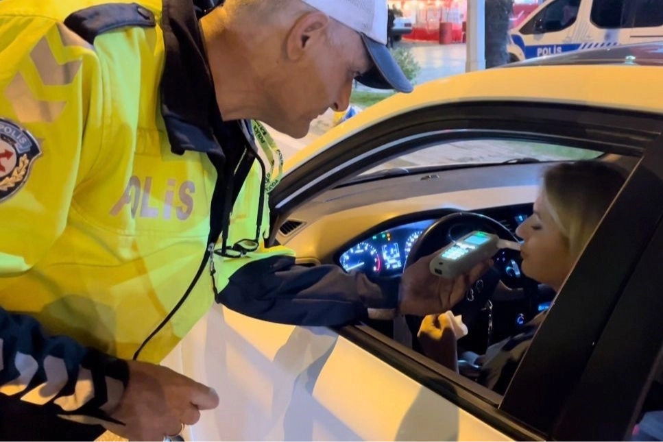 Polis memurunun alkolmetreyi üfleyemeyen sürücü ile imtihanı kameraya yansırken, izleyenlere ’Ne sabır varmış’ dedirtti. Kadın sürücü 0,89 promil alkollü çıktı.