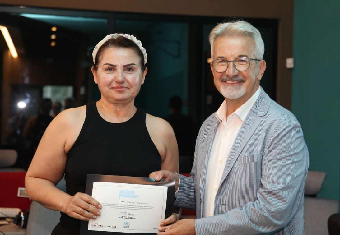 ‘Yeni nesil Nilüfer’ anlayışıyla kurulan Nilüfer Belediyesi Dijital İçerik Stüdyosu’nda kendisini geliştirmek isteyenlere yönelik podcast atölye çalışmaları başladı. Ücretsiz düzenlenen Nilüfer Belediyesi Podcast Atölyesi’ne 150 kişi başvurdu. Yaşları 15 ile 58 arasında değişen 20 katılımcı, eğitimden faydalanmaya hak kazandı. Podcast Atölyesi Koordinatörü ve Eğitmeni Özcan Yazıcı’nın yaptığı atölye çalışmasında podcastin yapımından, gelir elde edilmesine kadar geçen süreçlerle ilgili bilgi verildi. Teorik ve uygulamalı eğitim sürecinin ardından kursiyerlere sertifika verildi. Sertifika töreninde konuşan Nilüfer Belediye Başkanı Turgay Erdem, Nilüfer Belediyesi Dijital İçerik Stüdyosu ile gençlere ve bu alanda çalışmak isteyenlere çok değerli bir olanak sağladıklarını söyledi. Atölye çalışmasına katılanları kutlayan Başkan Erdem, yayın hayatlarında başarılar diledi. Sertifika töreniyle ilk atölye çalışması sona ererken, Nilüfer Belediyesi Dijital İçerik Stüdyosu’ndaki eğitimlerin ayda bir olmak üzere devam edeceği belirtildi.